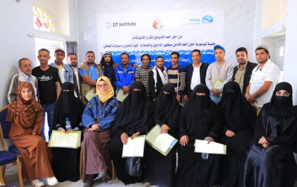 نفّذت منظمة سام للحقوق والحريات جلسة توعوية في مديرية المظفر بمحافظة تعز، تحت شعار” من أجل العدالة ومنع تكرار الانتهاكات”، تناولت العدالة من منظور الناجين وفهم الحقوق ومسارات التعافي، وذلك في إطار جهود تعزيز الوعي الجمعي لدى الضحايا بأهمية العدالة الانتقالية كمدخل شامل لمعالجة انتهاكات حقوق الإنسان وضمان عدم تكرارها.